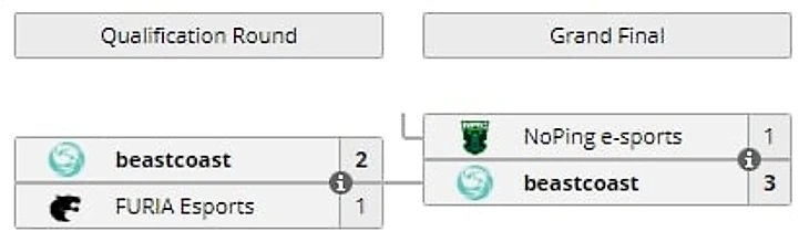 Матч завершился со счетом 3:1 по картам. За Beastcoast на правах замены из NiP выступал Родриго «Lelis» Сантос.
