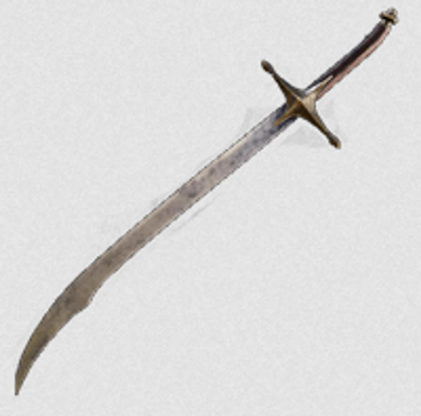 Скимитар – обладает только рубящим типом урона без пассивных эффектов. Умением меча является Удар с разворота и затрачивает 6 (-12) ОК. Весит оружие 4,0.
