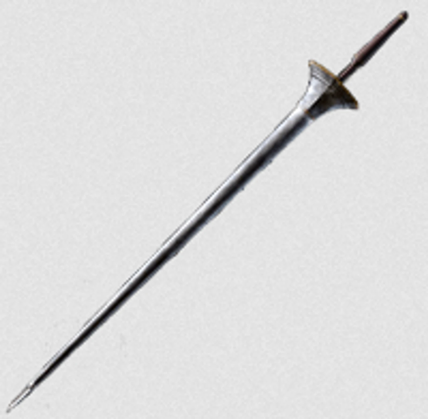 Длинный меч – имеет обычный и колющий урон. Оружие без пассивных эффектов. Меч обладает навыком Расплата и использует 8/12 ОК. Весит длинный меч 3,0.