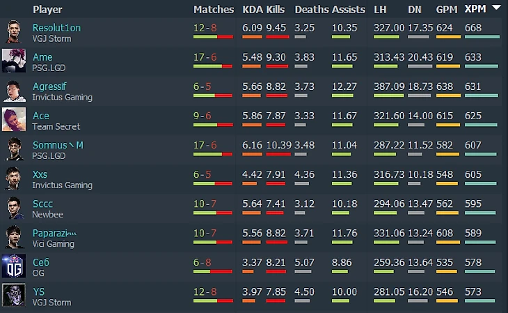 2. Среди всех игроков на MDL Changsha, что прошли дальше первого раунда лузеров, у Резоля самый высокий GPM. А по опыту в минуту он абсолютно лучший, с гигантским отрывом в 35 единиц от Аме.