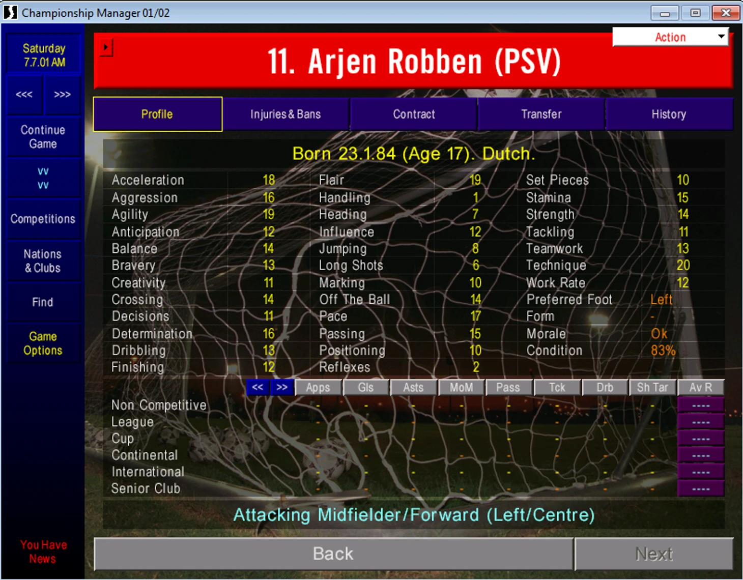 Ресерчеры взяли и проворонили талантливого Арьена Роббена в «Гронингене» и просто решили не создавать его в CM 00/01, зато с лихвой накинули ему скиллов в следующей версии менеджера. Кстати, в том сезоне Арьен должен был еще играть за «Гронинген», но зная о будущем трансфере, его сразу перекинули в «ПСВ».