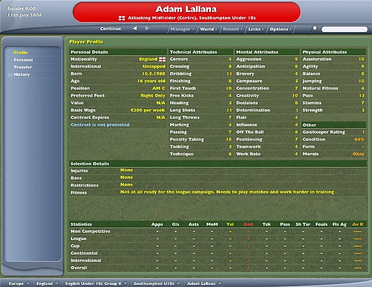 Гарет Бэйл числился в юношеских командах «Саутгемптона» с 1999 года, а дебютировал за основу в 2006 году, так что я решил начать его поиск сразу в Football Manager 2005. Бэйл там не нашелся, зато попались на глаза очень молодые Тео Уолкотт и Адам Лаллана: