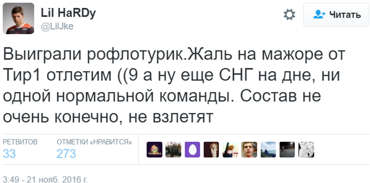 Игроки VP не могут не помнить о победе Na’Vi на Старладдере – и о том, что случилось с командой после этой победы. О том провале коллег Рамзесу и компании (а заодно и о темных временах VP, когда команда раз за разом отдавала матчи с преимуществом в 15 тысяч золота) будут напоминать все две недели до Мейджора. В Virtus.Pro знают все возможные доводы сторонников теории «перед Мейджором лучше ничего не выигрывать» и смеются над ними. Посмотрите хотя бы на злой и ехидный твит Лила сразу после победы.