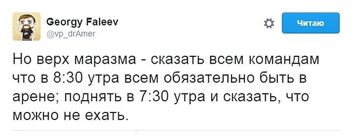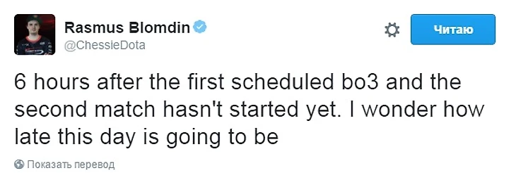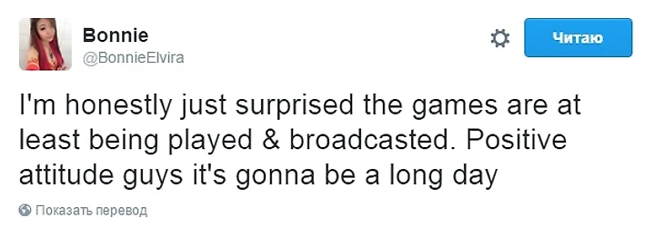 «6 часов после первого запланированного bo3 и второй матч еще не начался. Я представляю, как долго будет длиться этот день.»