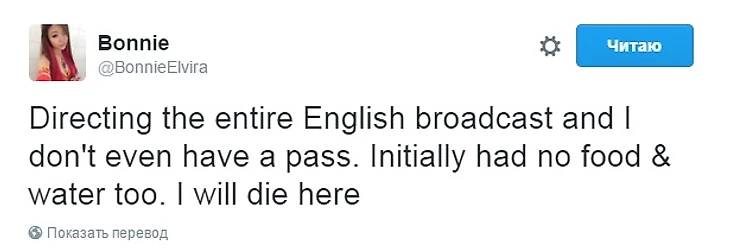 «Управляя английской трансляцией, я даже не могу выйти. Вначале тут не было еды и воды. Я умру здесь».