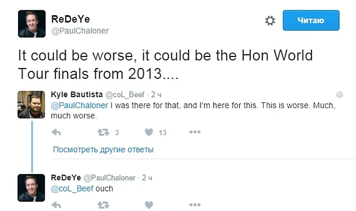 «Это могло быть хуже, если бы это был финал HoN World Tour в 2013» – «Я был там тогда, я нахожусь здесь сейчас. Здесь хуже. Намного, намного хуже».