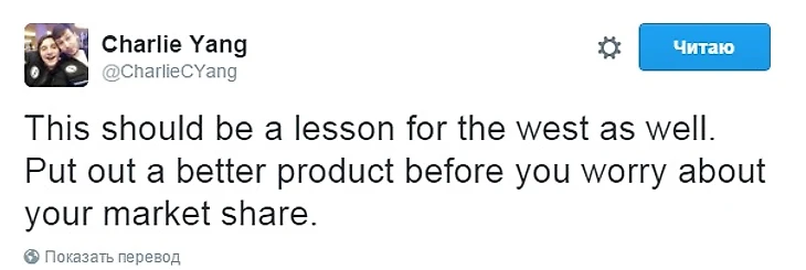 «Это должно стать хорошим уроком для запада. Сначала выпусти лучший продукт, а потом беспокойся о его продажах».