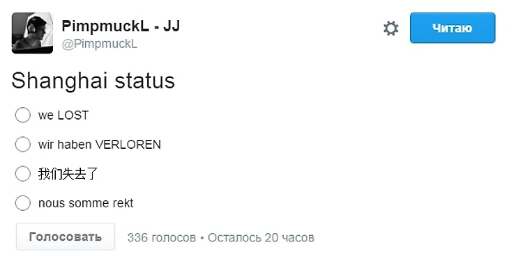 А пока новый девайс ехал на место проведения турнира (а это около часа), арена закрылась... Остальные игры будут проходить без публики. Как и предупреждали администраторы чемпионата еще утром. В Шанхае уже половина 10 вечера, впереди еще 3 матча bo1 на вылет...