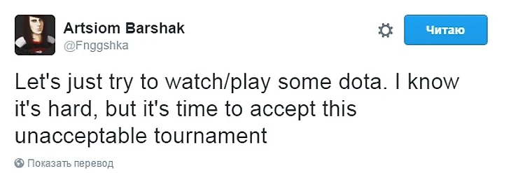 «Давайте просто попробуем посмотреть/поиграть в доту. Я знаю, это тяжело, но пришло время просто принять этот турнир».