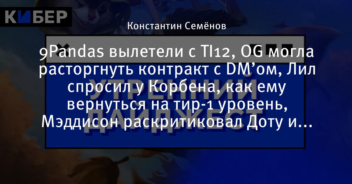 9Pandas вылетели с TI12, OG могла расторгнуть контракт с DM’ом, Лил спросил у Корбена, как ему вернуться на тир-1 уровень, Мэддисон раскритиковал Доту и другие новости утра