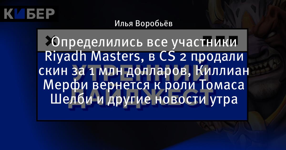 Определились все участники Riyadh Masters, в CS 2 продали скин за 1 млн долларов, Киллиан Мерфи вернется к роли Томаса Шелби и другие новости утра