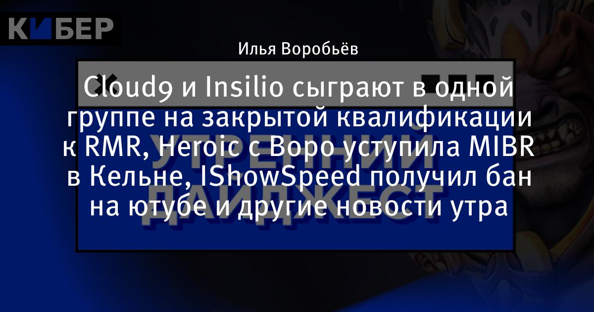 Cloud9 и Insilio сыграют в одной группе на закрытой квалификации к RMR, Heroic с Воро уступила MIBR в Кельне, IShowSpeed получил бан на ютубе и другие новости утра