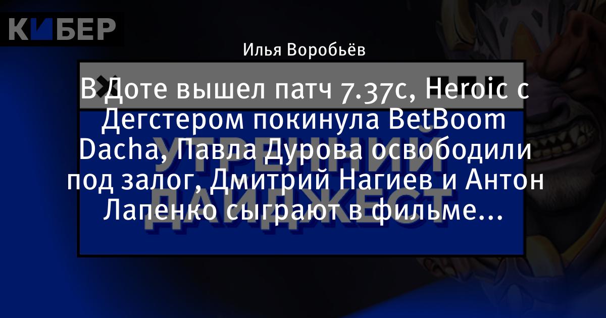 В Доте вышел патч 7.37с, Heroic с Дегстером покинула BetBoom Dacha, Павла Дурова освободили под залог, Дмитрий Нагиев и Антон Лапенко сыграют в фильме «Актерище» и другие новости утра