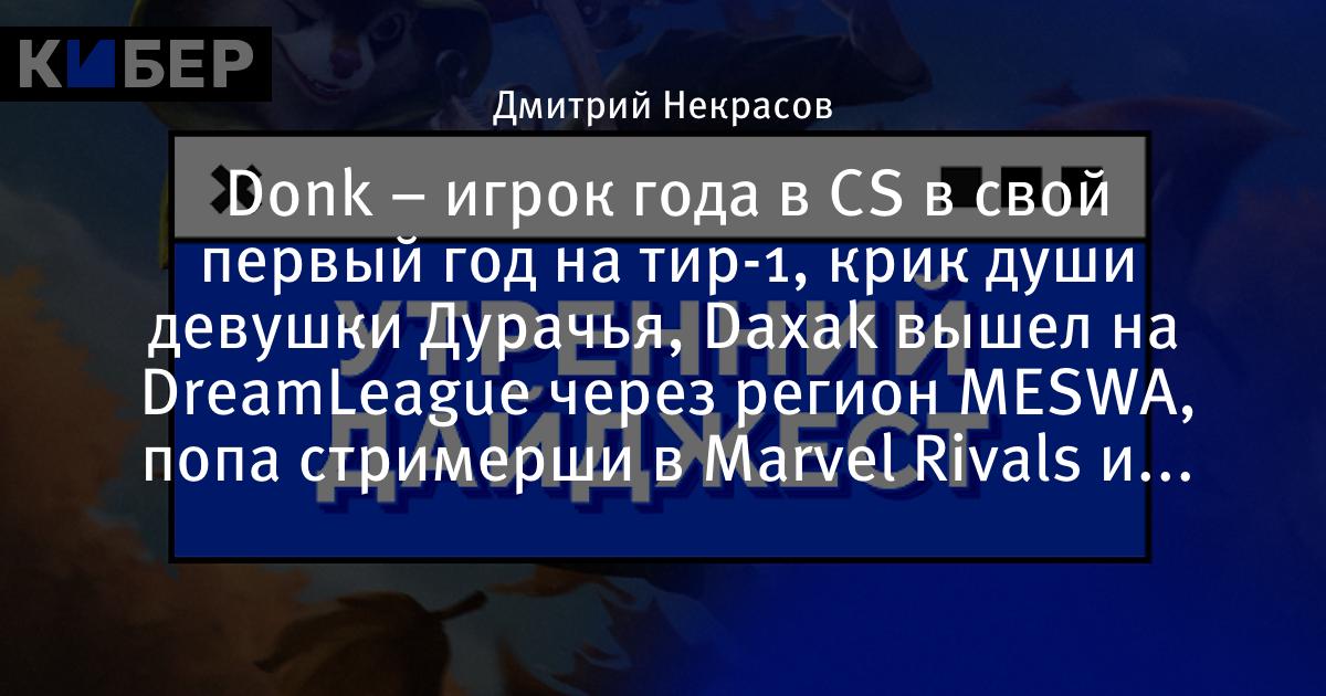 Donk – игрок года в CS в свой первый год на тир-1, крик души девушки Дурачья, Daxak вышел на DreamLeague через регион MESWA, попа стримерши в Marvel Rivals и другие новости утра