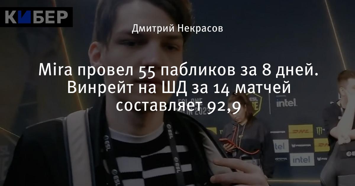 Mira провел 55 пабликов за 8 дней. Винрейт на ШД за 14 матчей составляет 92,9
