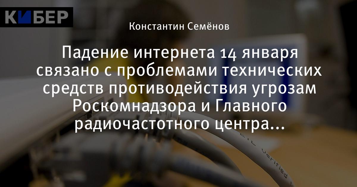 Падение интернета 14 января связано с проблемами технических средств противодействия угрозам Роскомнадзора и Главного радиочастотного центра («Ведомости»)