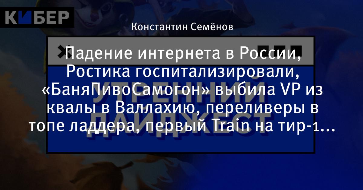 Падение интернета в России, Ростика госпитализировали, «БаняПивоСамогон» выбила VP из квалы в Валлахию, переливеры в топе ладдера, первый Train на тир-1 в CS 2 и другие новости утра