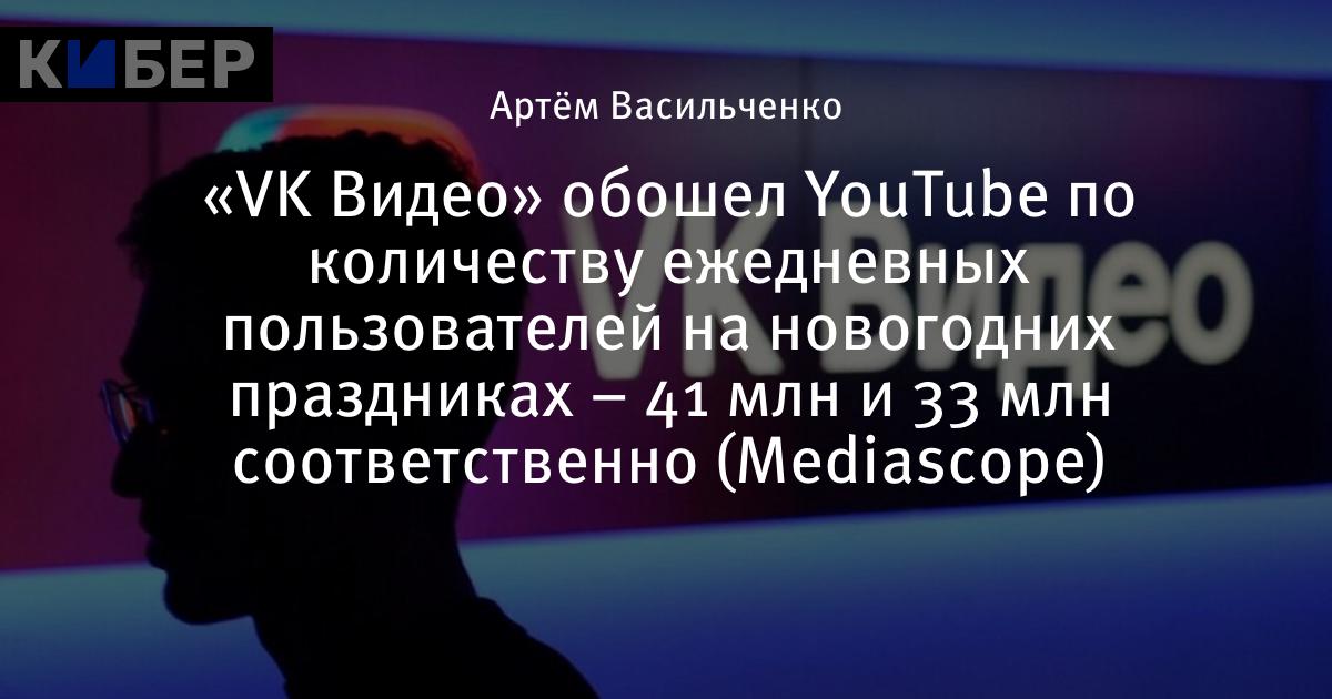 «VK Видео» обошел YouTube по количеству ежедневных пользователей на новогодних праздниках – 41 млн и 33 млн соответственно (Mediascope)