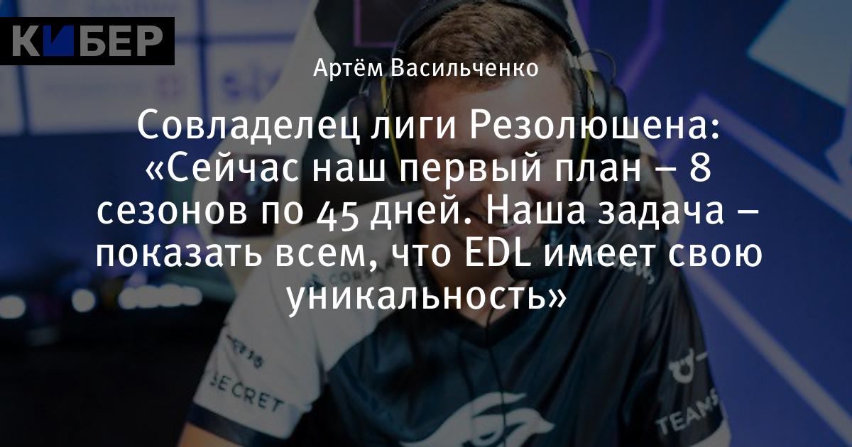 Совладелец лиги Резолюшена: «Сейчас наш первый план – 8 сезонов по 45 дней. Наша задача – показать всем, что EDL имеет свою уникальность»