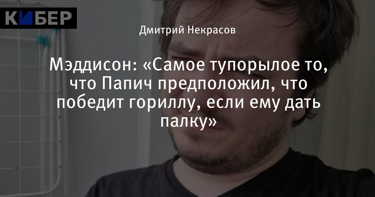 Мэддисон: «Самое тупорылое то, что Папич предположил, что победит гориллу, если ему дать палку»
