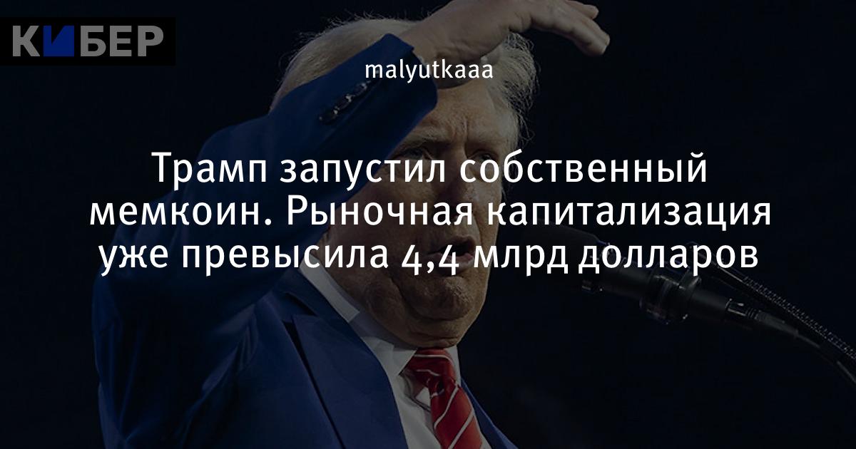 Трамп запустил собственный мемкоин. Рыночная капитализация уже превысила 4,4 млрд долларов