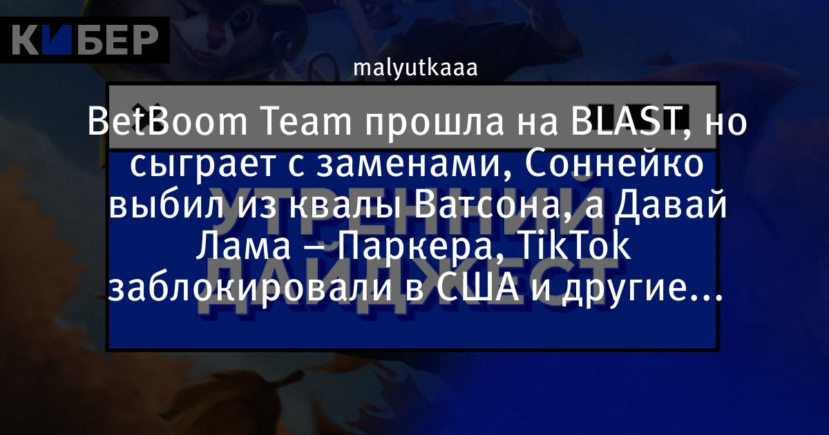 BetBoom Team прошла на BLAST, но сыграет с заменами, Соннейко выбил из квалы Ватсона, а Давай Лама – Паркера, TikTok заблокировали в США и другие новости утра