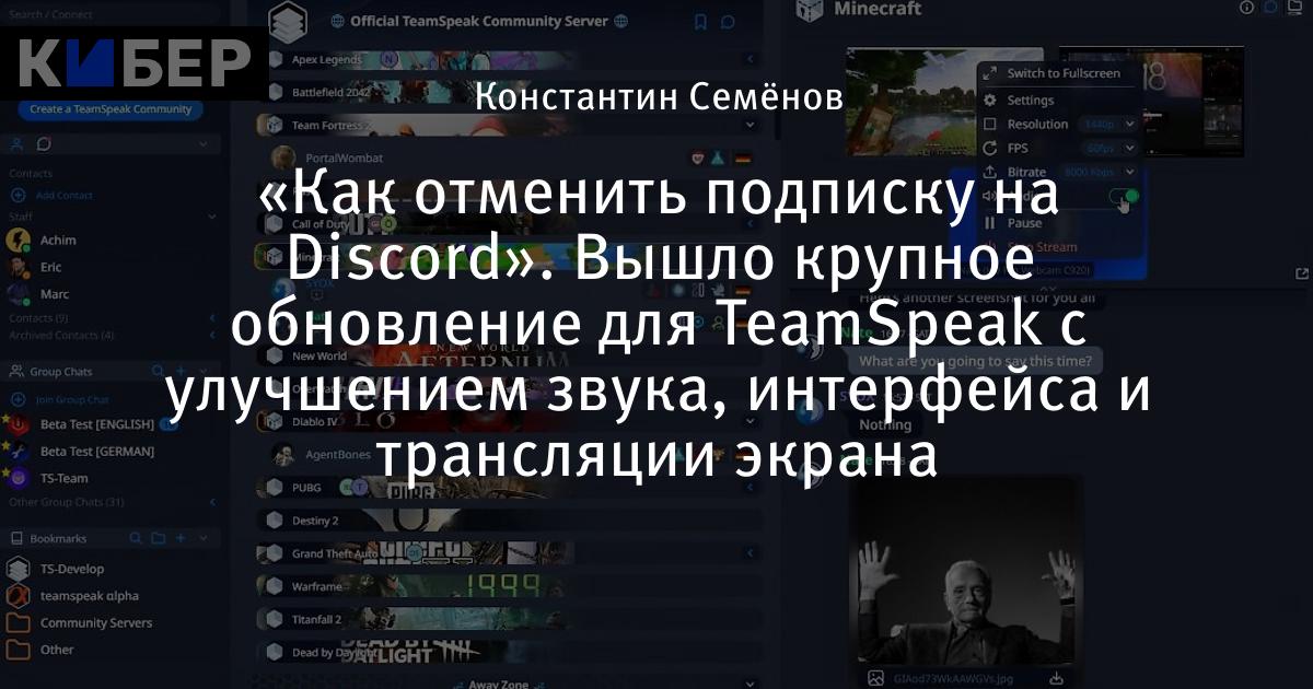 «Как отменить подписку на Discord». Вышло крупное обновление для TeamSpeak с улучшением звука, интерфейса и трансляции экрана