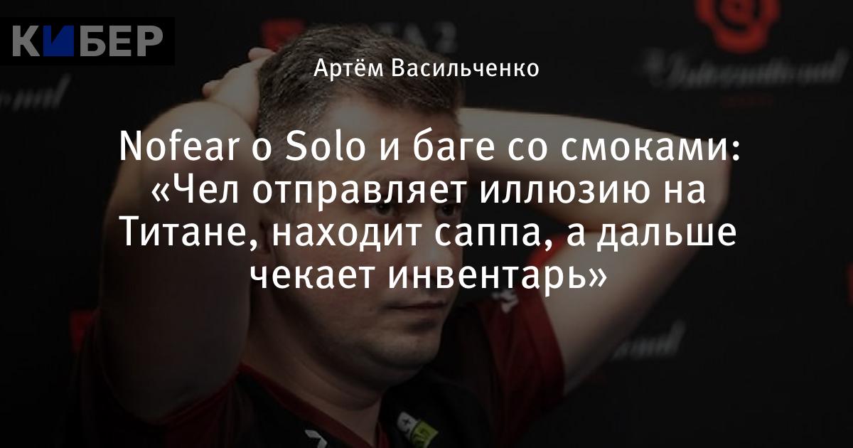Nofear о Solo и баге со смоками: «Чел отправляет иллюзию на Титане, находит саппа, а дальше чекает инвентарь»