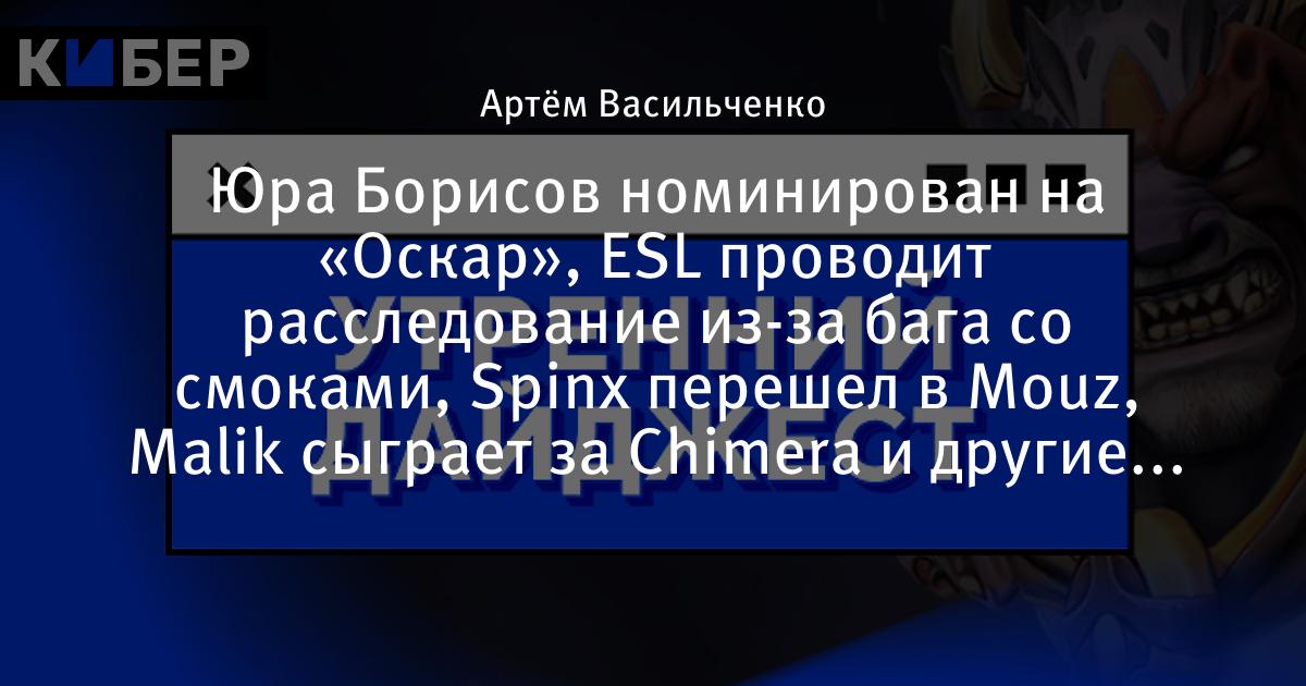 Юра Борисов номинирован на «Оскар», ESL проводит расследование из-за бага со смоками, Spinx перешел в Mouz, Malik сыграет за Chimera и другие новости утра