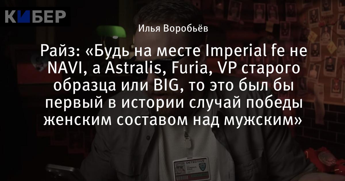 Райз: «Будь на месте Imperial fe не NAVI, а Astralis, Furia, VP старого образца или BIG, то это был бы первый в истории случай победы женским составом над мужским»
