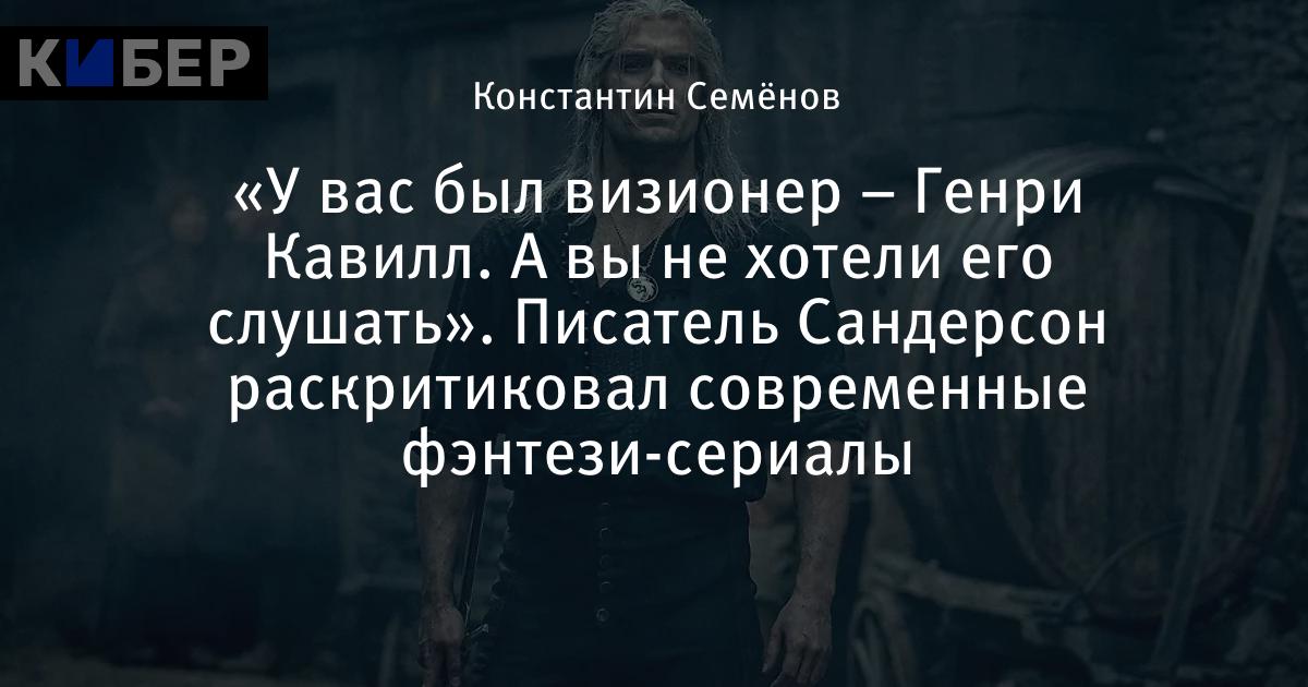 Думаю, в этом была и проблема «Ведьмака». У вас был такой визионер – Генри Кавилл. А вы не хотели его слушать. Так что вот так», – подытожил писатель Брэндон Сандерсон, известный по фэнтези-вселенной «Космер» и работой над окончанием фэнтезийного цикла Роберта Джордана «Колесо Времени».