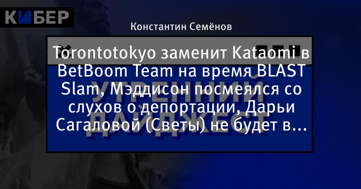 Torontotokyo заменит Kataomi в BetBoom Team на время BLAST Slam, Мэддисон посмеялся со слухов о депортации, Дарьи Сагаловой (Светы) не будет в «Букиных» и другие новости утра