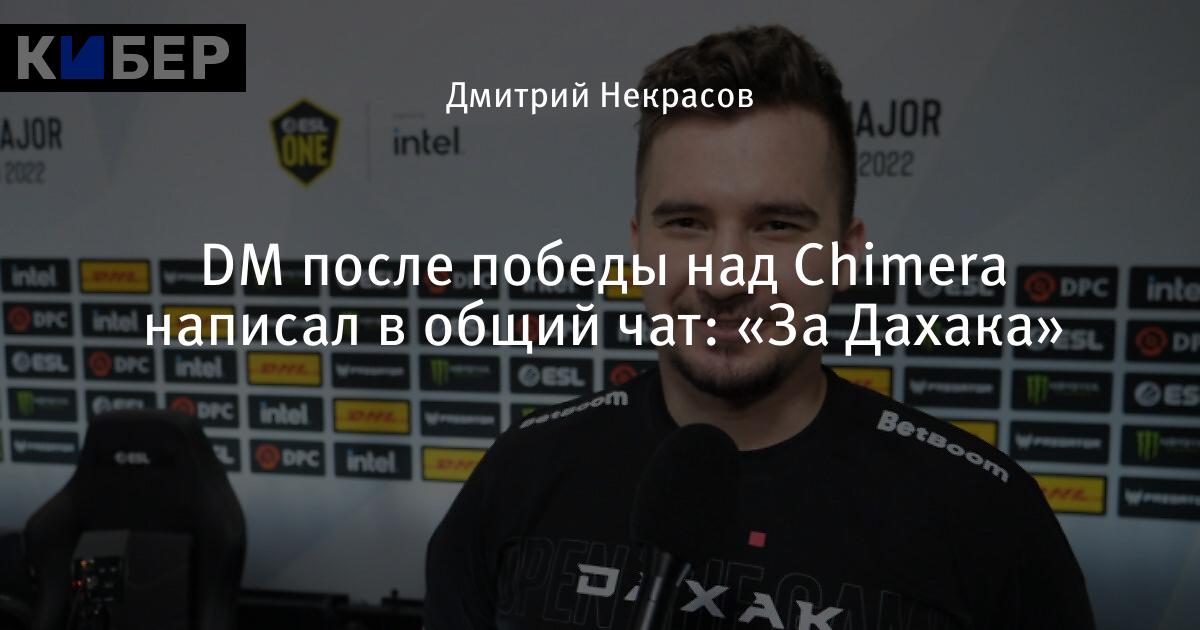 После того как игроки Chimera написали GG, Дмитрий «DM» Дорохин отправил в общий чат фразу «4Daxak (Кибер: За Дахака)».