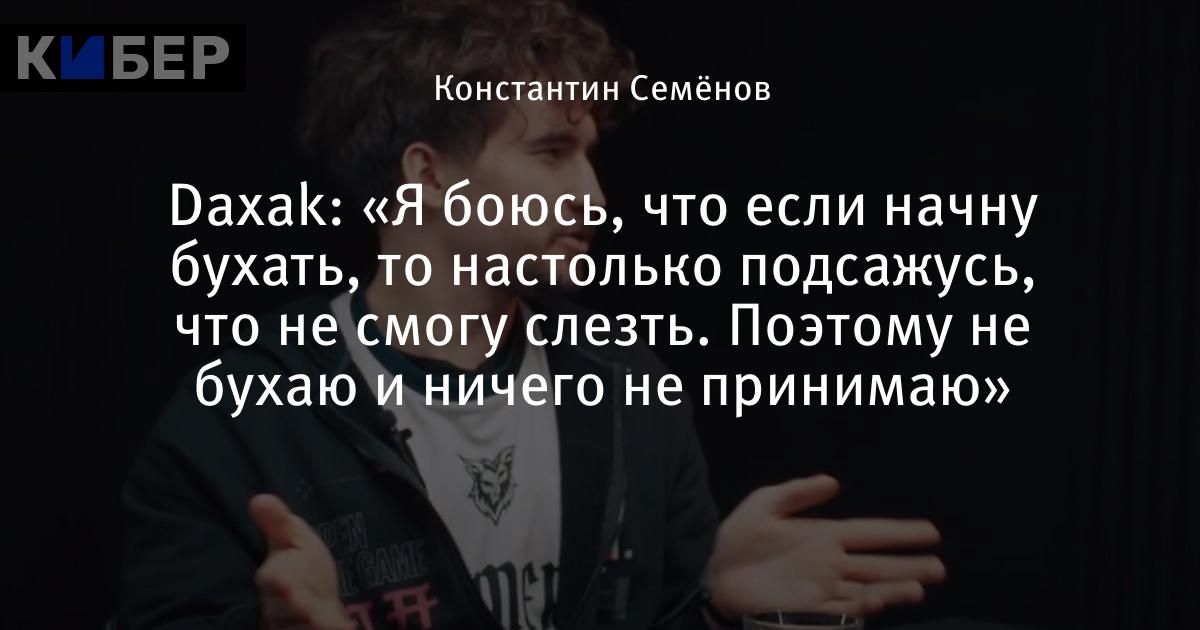 Я боюсь того, что если я начну бухать или еще что-то, то настолько подсажусь, что не смогу слезть. Поэтому я не бухаю, ничего не принимаю и так далее. Мне кажется, я сильный не потому что я сильный, а потому что не ведусь на эти слабости», – поделился Никита «Daxak» Кузьмин во время просмотра видео с алкострима Андрея «Afoninje» Афонина.