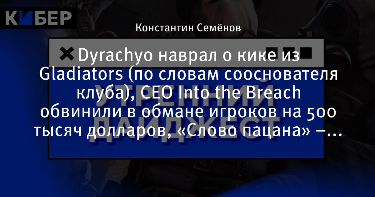 Dyrachyo наврал о кике из Gladiators (по словам сооснователя клуба), CEO Into the Breach обвинили в обмане игроков на 500 тысяч долларов, «Слово пацана» – самый популярный сериал среди россиян и другие новости утра