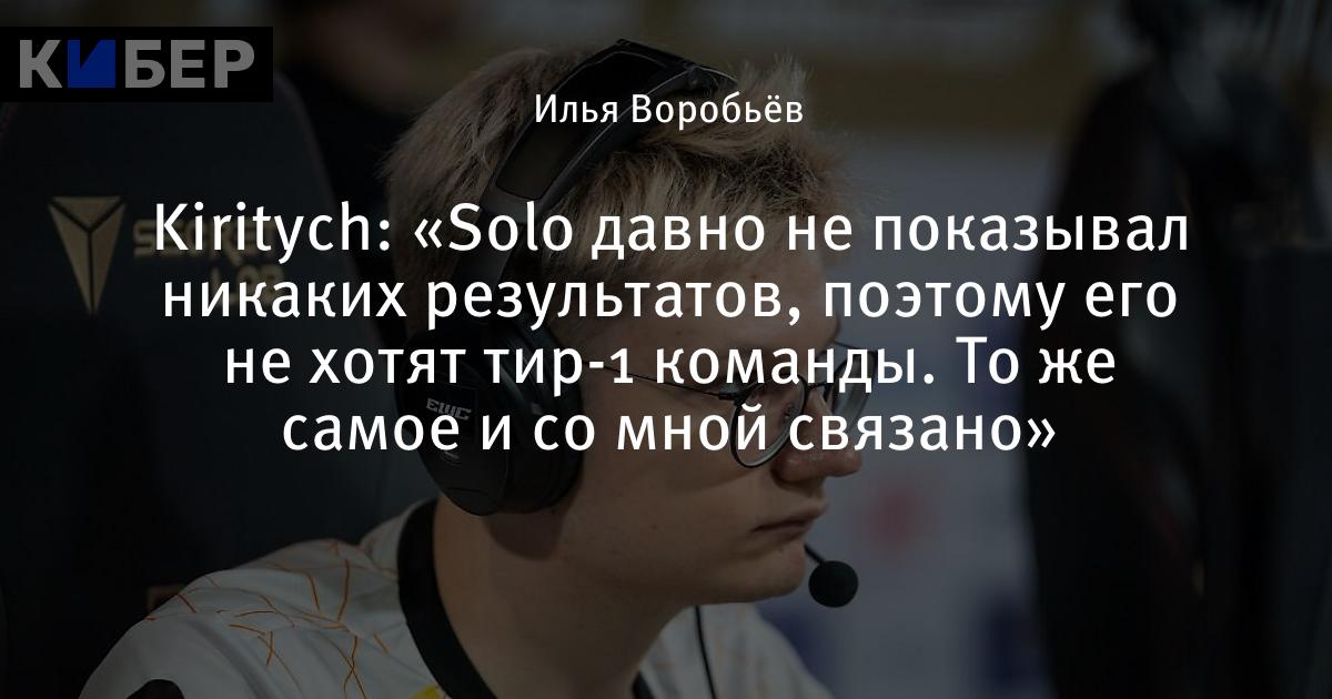 Kiritych: «Solo давно не показывал никаких результатов, поэтому его не хотят тир-1 команды. То же самое и со мной связано»