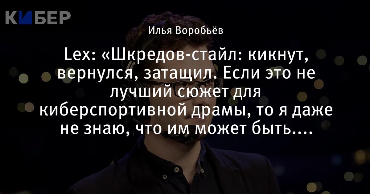Lex: «Шкредов-стайл: кикнут, вернулся, затащил. Если это не лучший сюжет для киберспортивной драмы, то я даже не знаю, что им может быть. Легенда!»