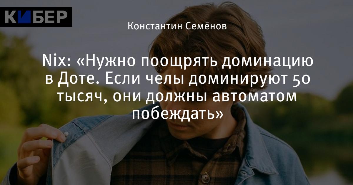 Nix: «Нужно поощрять доминацию в Доте. Если челы доминируют 50 тысяч, они должны автоматом побеждать»
