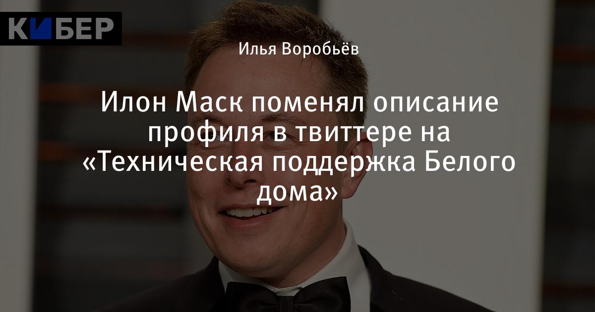 Илон Маск назвал себя «Техподдержкой Белого дома» в описании аккаунта в твиттере.