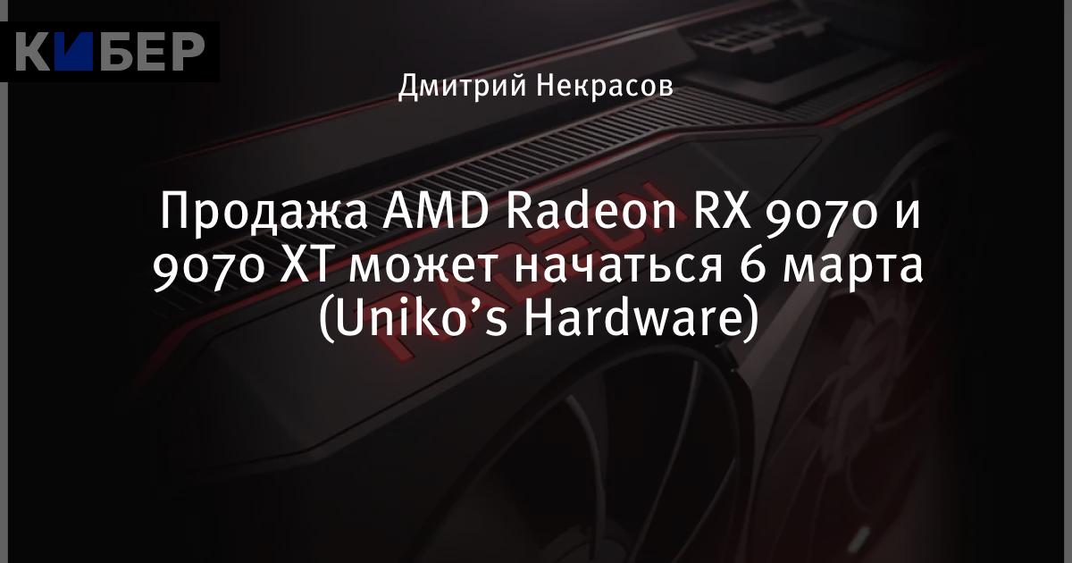 По информации издания Uniko’s Hardware, старт продаж видеокарт AMD Radeon RX 9070 и 9070 XT запланирован на 6 марта.