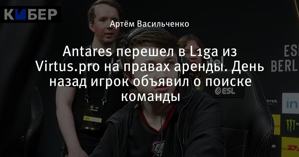 Antares перешел в L1ga из Virtus.pro на правах аренды. День назад игрок объявил о поиске команды