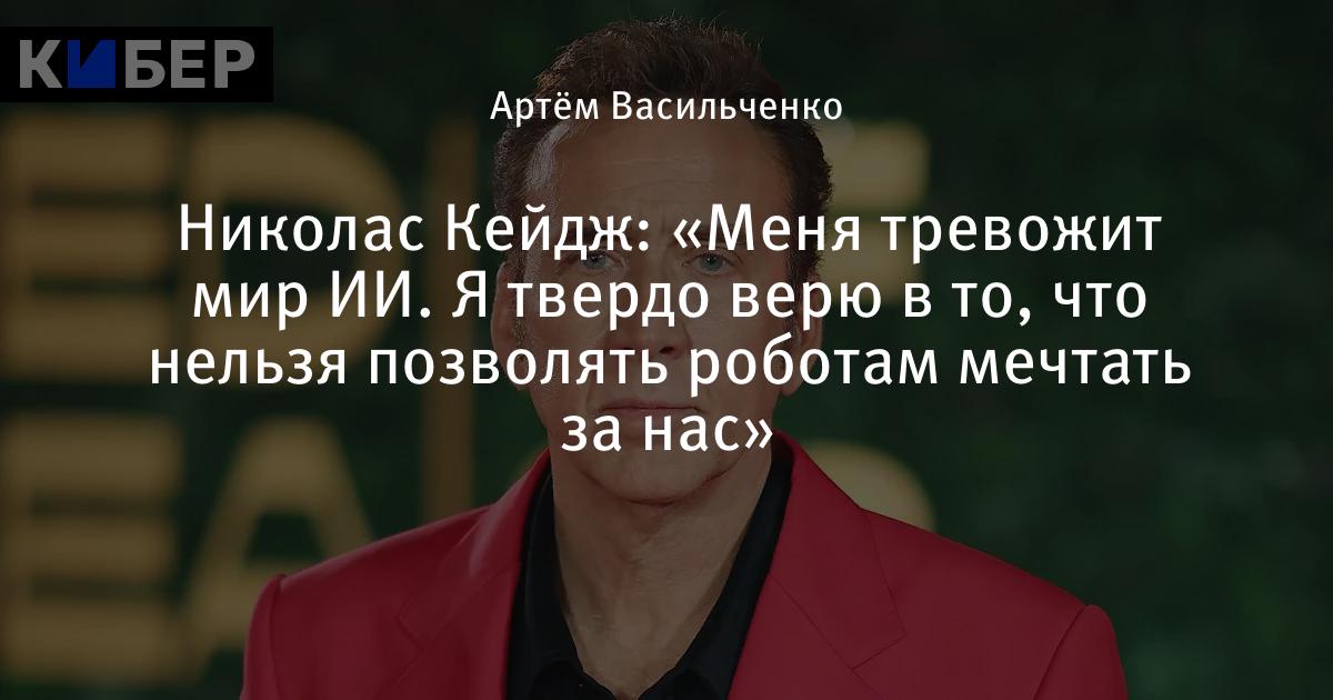 Николас Кейдж: «Меня тревожит мир ИИ. Я твердо верю в то, что нельзя позволять роботам мечтать за нас»