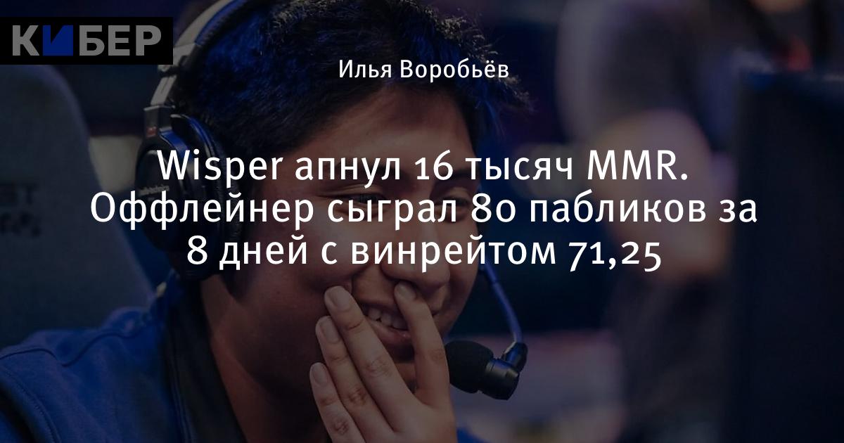 Wisper апнул 16 тысяч MMR. Оффлейнер сыграл 80 пабликов за 8 дней с винрейтом 71,25