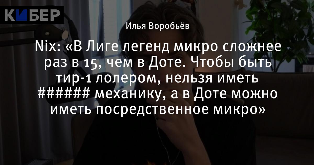 Nix: «В Лиге легенд микро сложнее раз в 15, чем в Доте. Чтобы быть тир-1 лолером, нельзя иметь ###### механику, а в Доте можно иметь посредственное микро»