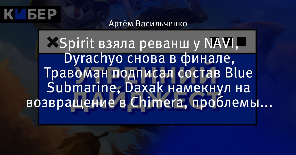 Spirit взяла реванш у NAVI, Dyrachyo снова в финале, Травоман подписал состав Blue Submarine, Daxak намекнул на возвращение в Chimera, проблемы в работе PlayStation Network и другие новости утра