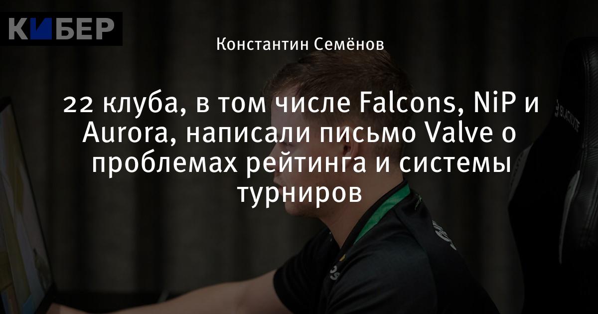 22 клуба, в том числе Falcons, NiP и Aurora, написали письмо Valve о проблемах рейтинга и системы турниров
