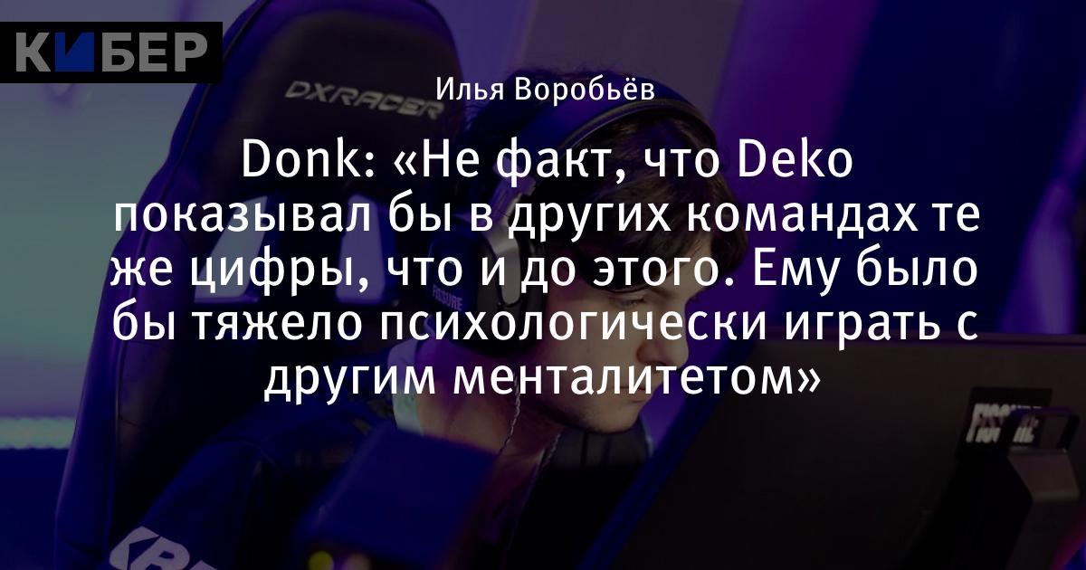 Donk: «Не факт, что Deko показывал бы в других командах те же цифры, что и до этого. Ему было бы тяжело психологически играть с другим менталитетом»