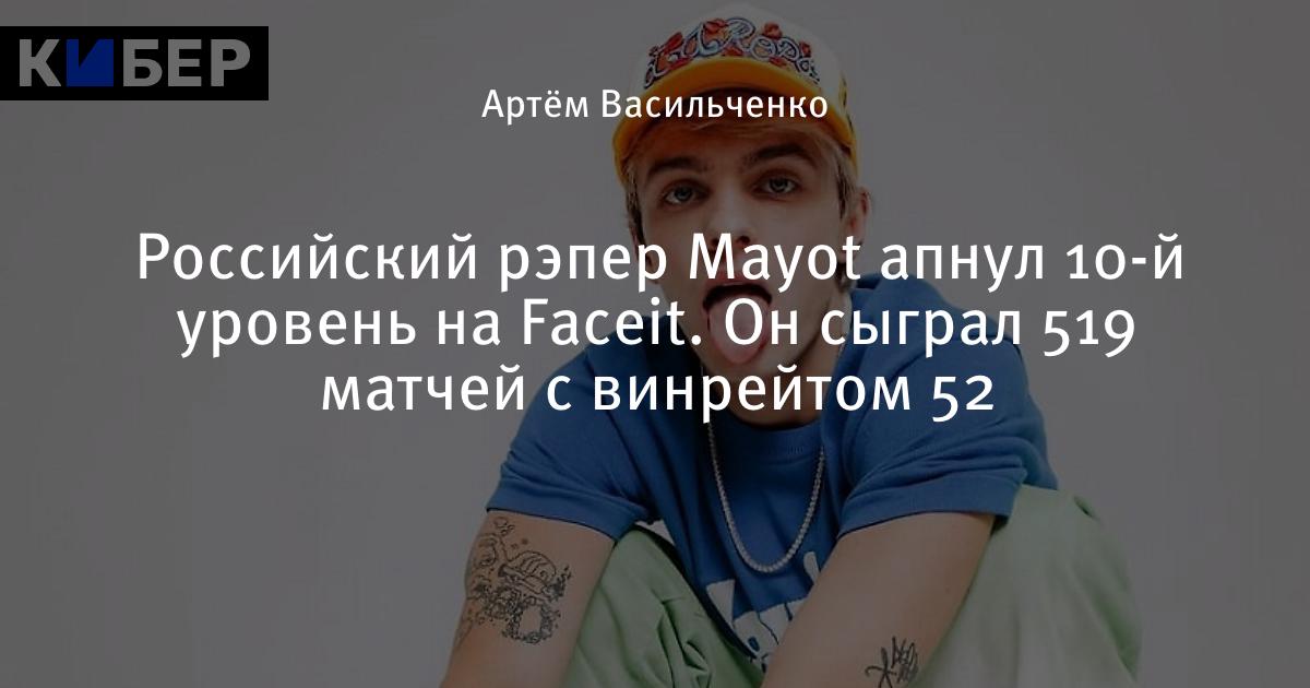 Российский рэпер Артем «Mayot» Никитин апнул 10-й уровень на Faceit. Он сыграл 519 матчей с винрейтом 52.