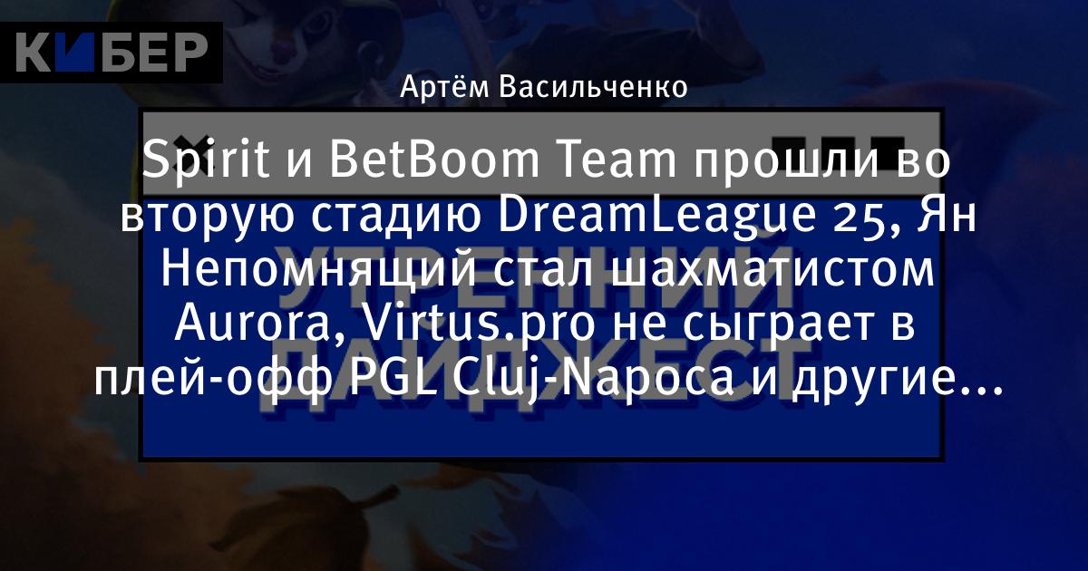 Spirit и BetBoom Team прошли во вторую стадию DreamLeague 25, Ян Непомнящий стал шахматистом Aurora, Virtus.pro не сыграет в плей-офф PGL Cluj-Napoca и другие новости утра