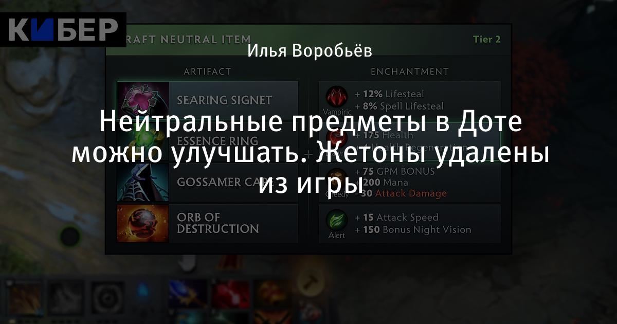 Нейтральные предметы в Доте можно улучшать. Жетоны удалены из игры